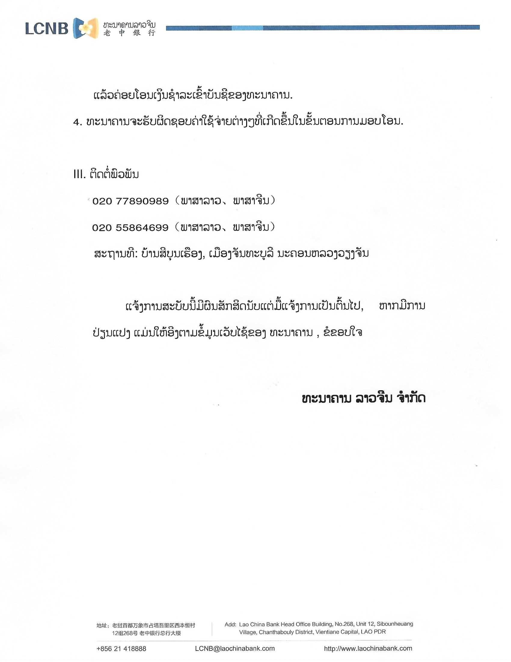 ການຊ່ວຍເຫຼືອ ທະນາຄານລາວຈີນ