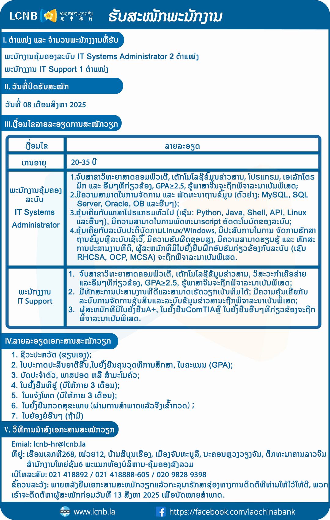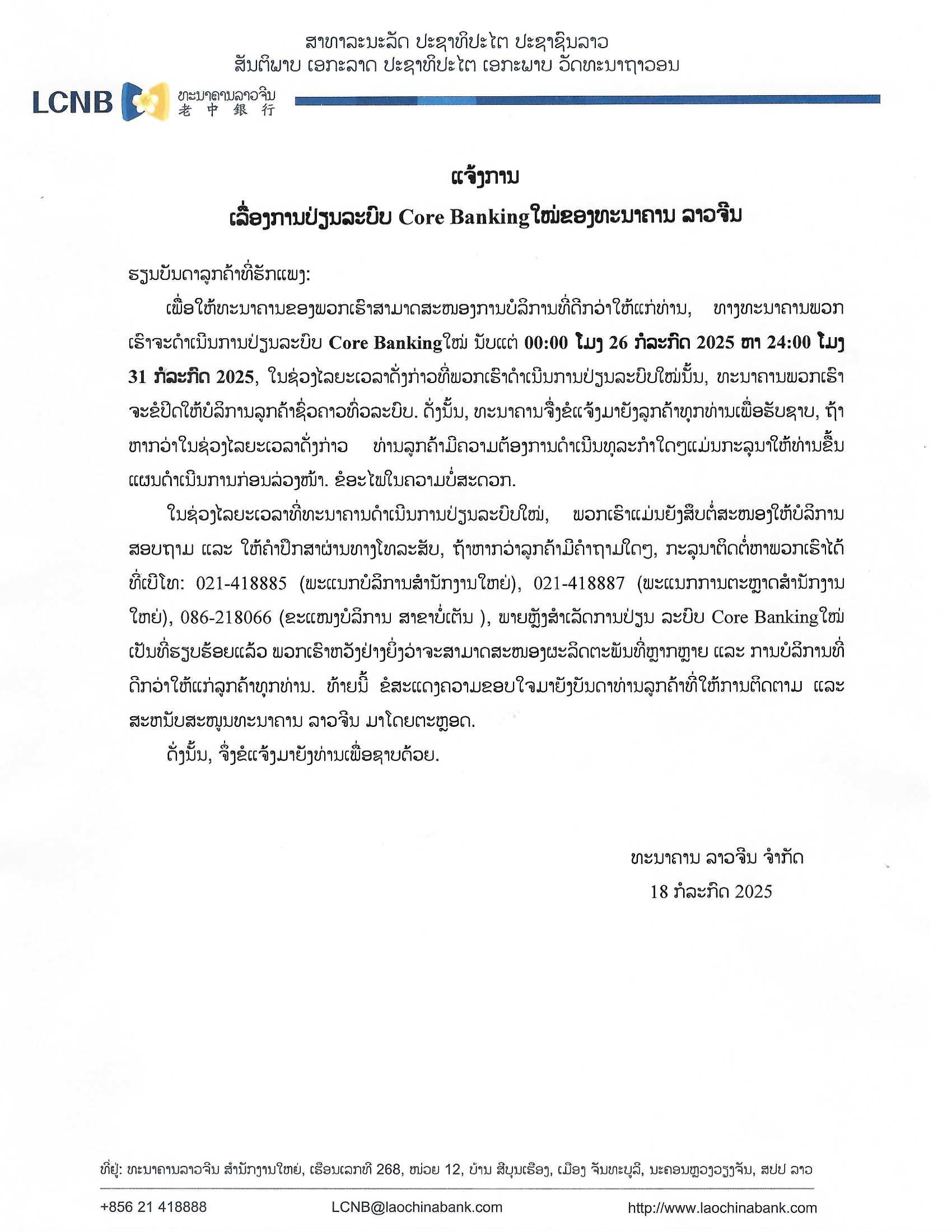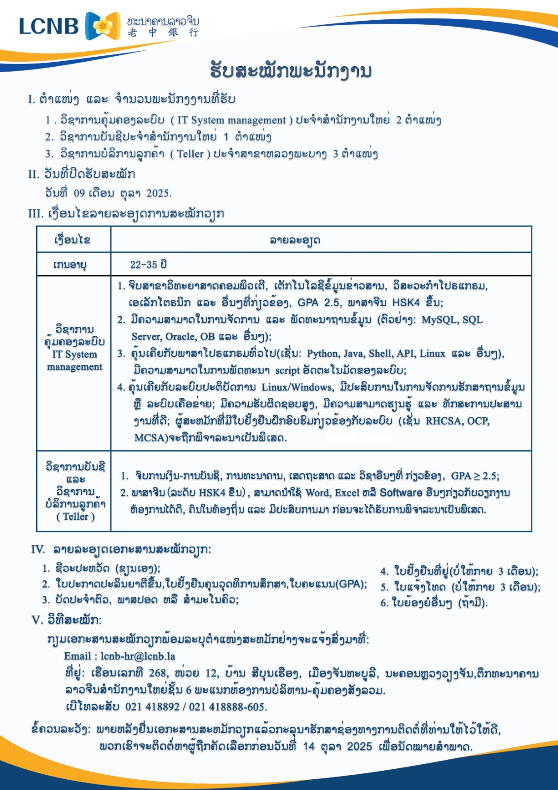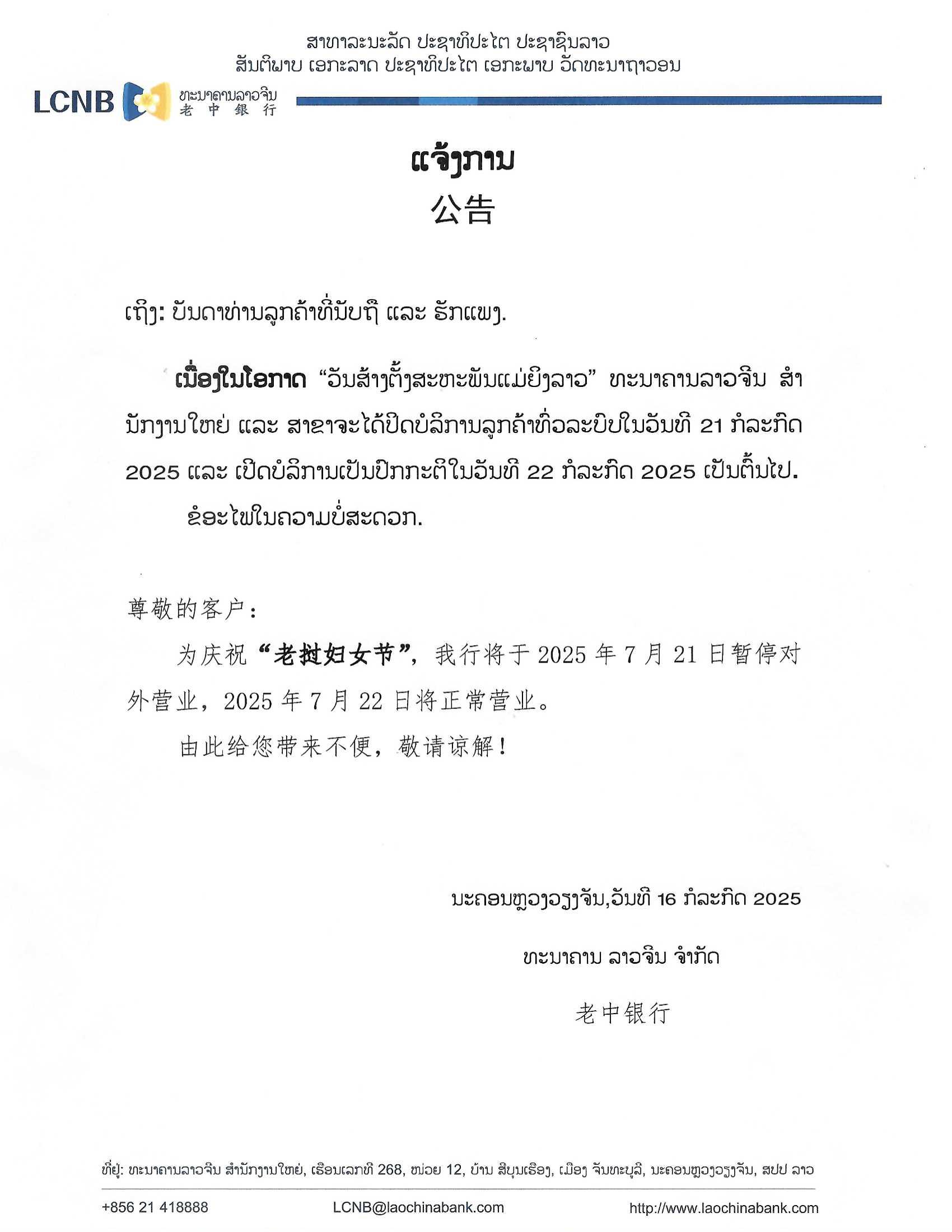 ເງິນຝາກມີກຳນົດຕາມສັນຍາ | - | - | - | - | ເງິນຝາກມີກຳນົດ 3 ເດືອນ | 2.15% | 1.30% | 0.70% | 1.00% |